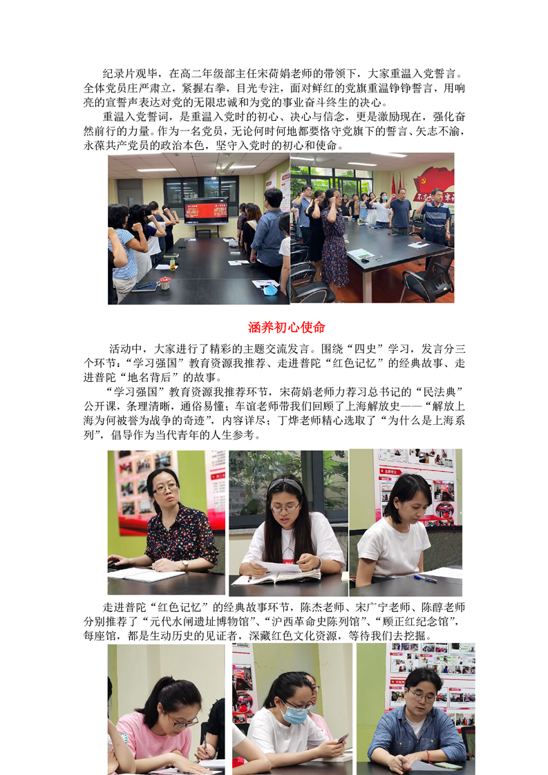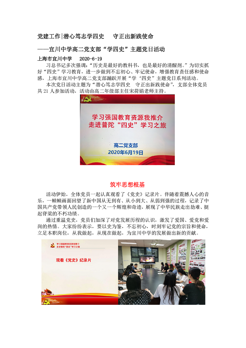 主题党日——潜心笃学学四史,守正出新践使命(高二支部)
