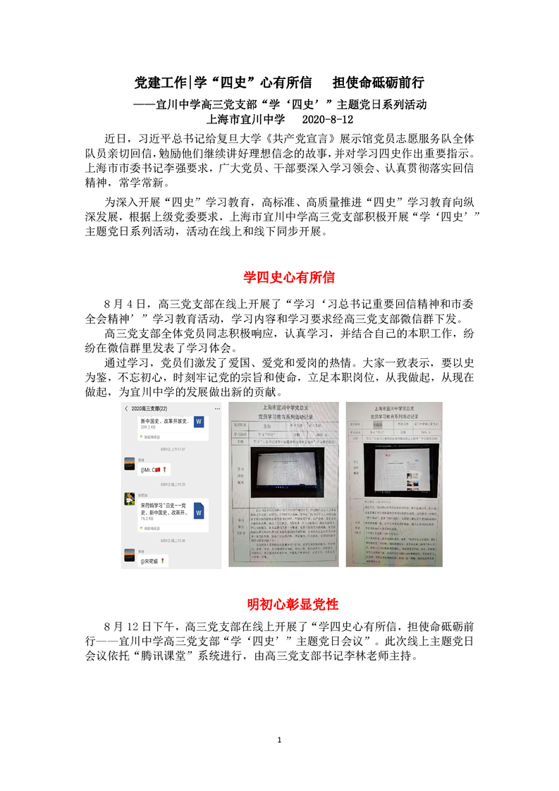 主题党日——学“四史”心有所信 担使命砥砺前行(高三支部)