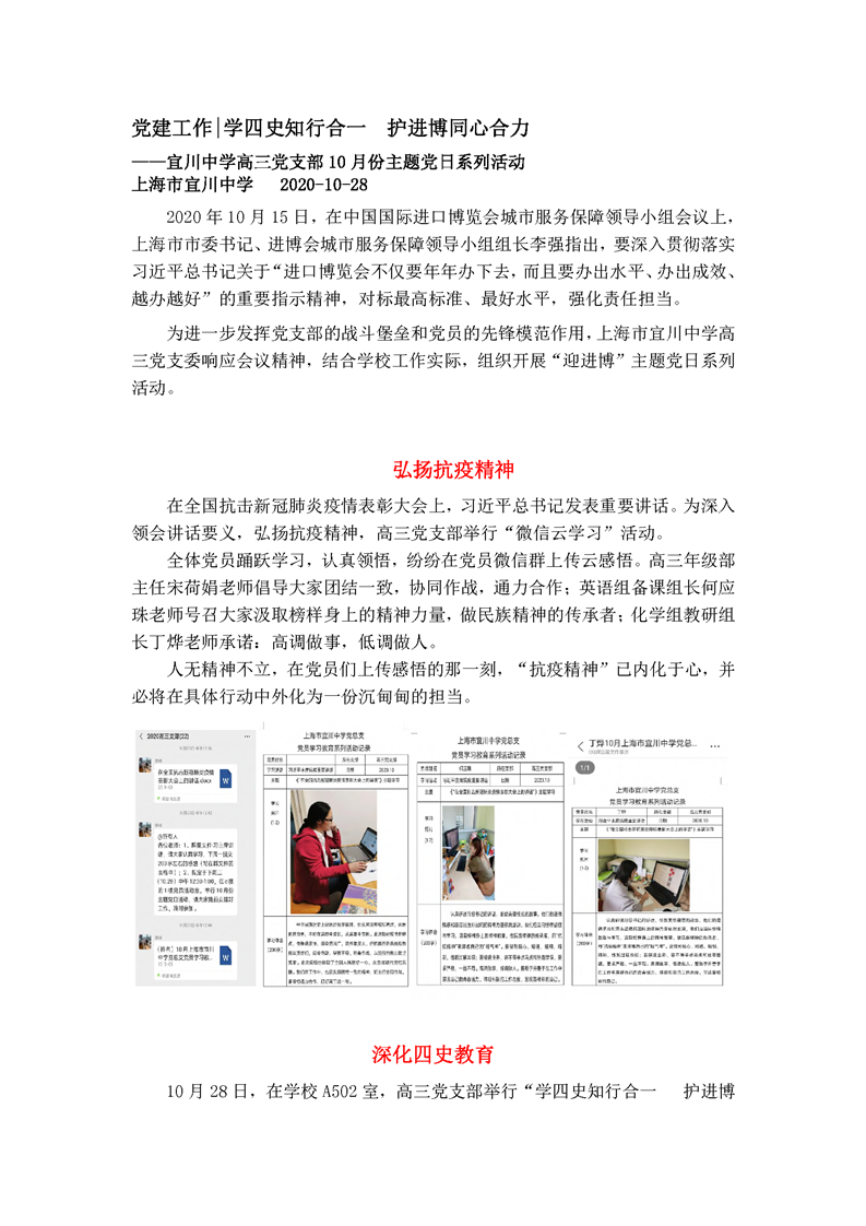 主题党日——学四史知行合一 护进博同心合力(高三支部)