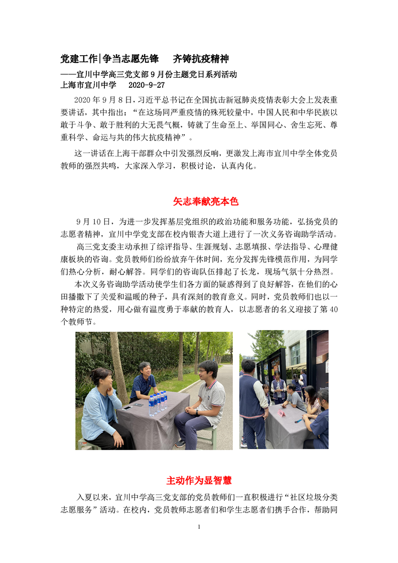 主题党日——争当志愿先锋 齐铸抗疫精神(高三支部)