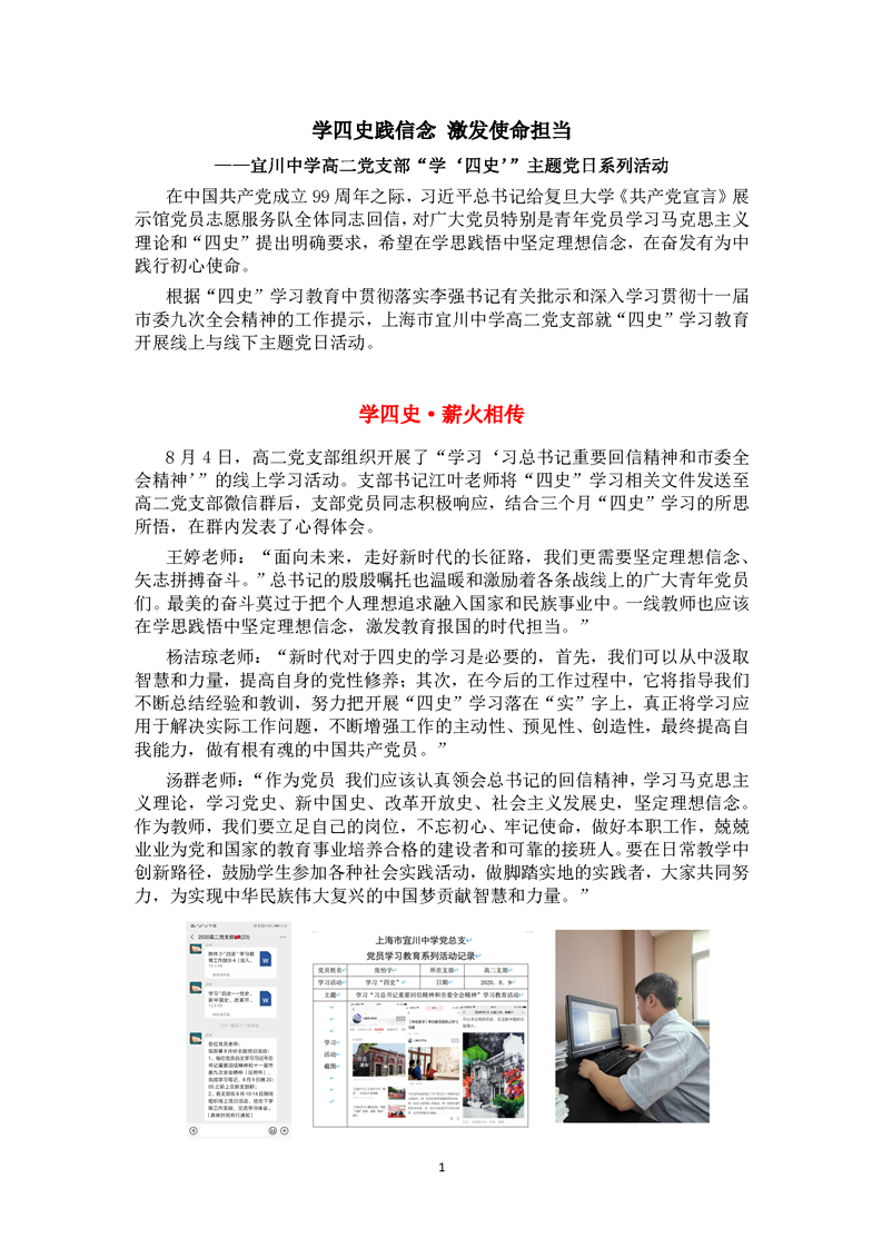 主题党日——学四史践信念 激发使命担当(高二支部)