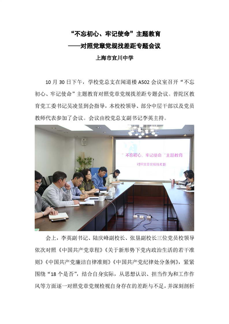 “不忘初心,牢记使命” 主题教育对照党章党规找差距专题会议